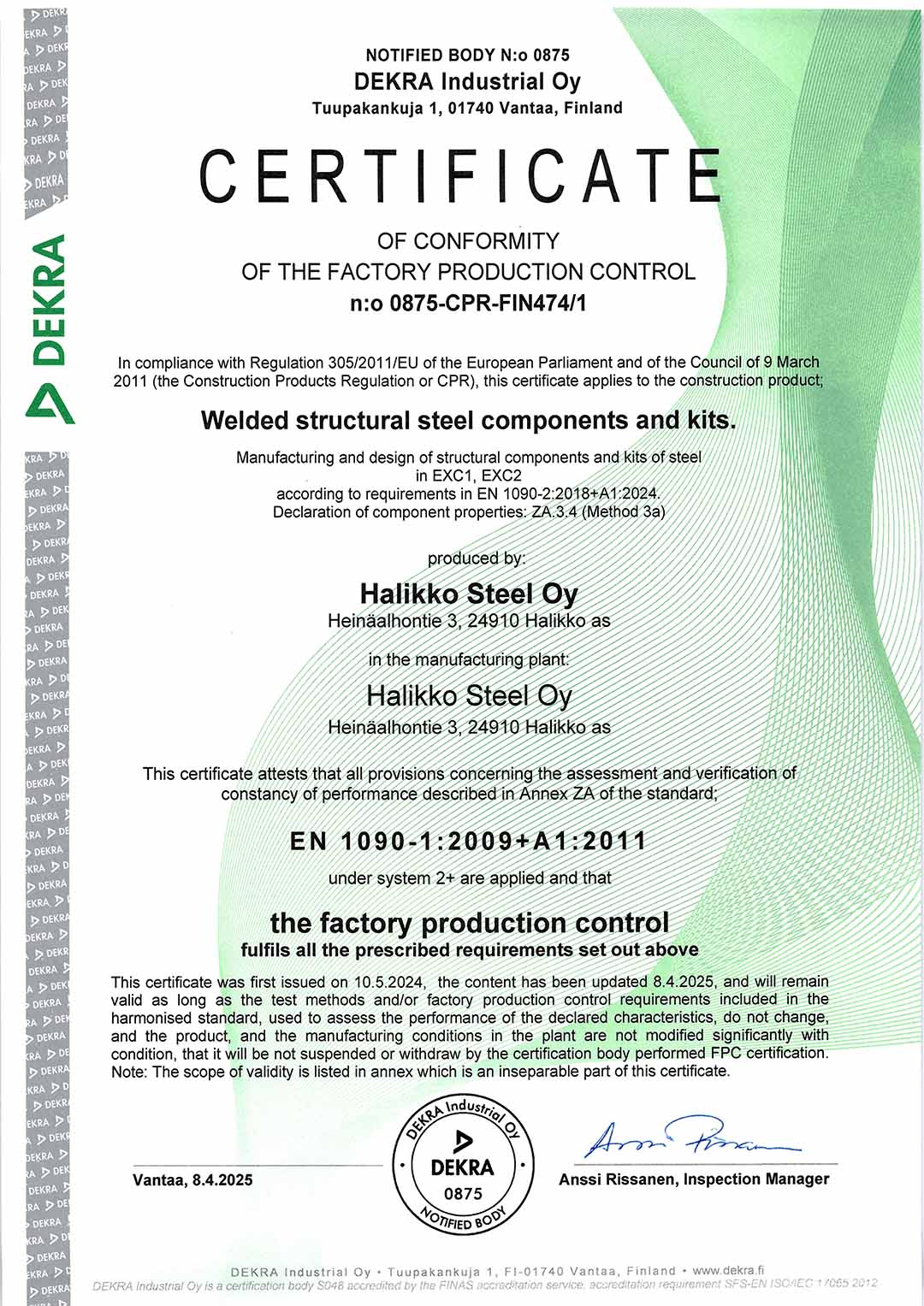 We provide our customers with high-quality end-products and services. The high-quality of our production processes and process management are certified by an independent auditing organization. Our quality management system complies with the requirements of ISO 9001, and it is certified by DEKRA Industrial Oy.